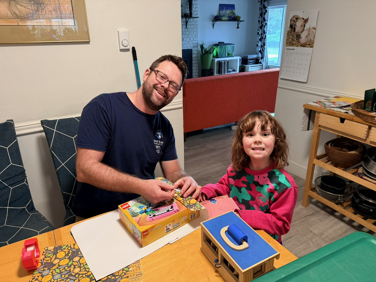 Kira playing a game at Quarter WorldDan and Kira wrapping a present for a birthday party.Racing on the Columbia river on the might Resolute.Mr. Dan Tedrow