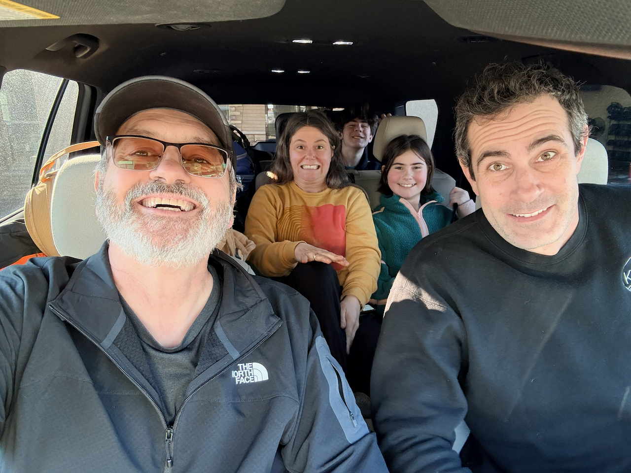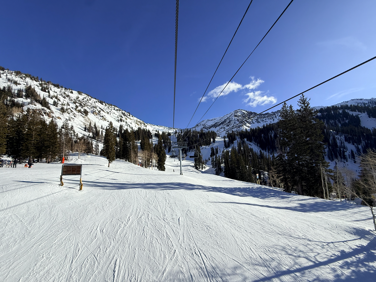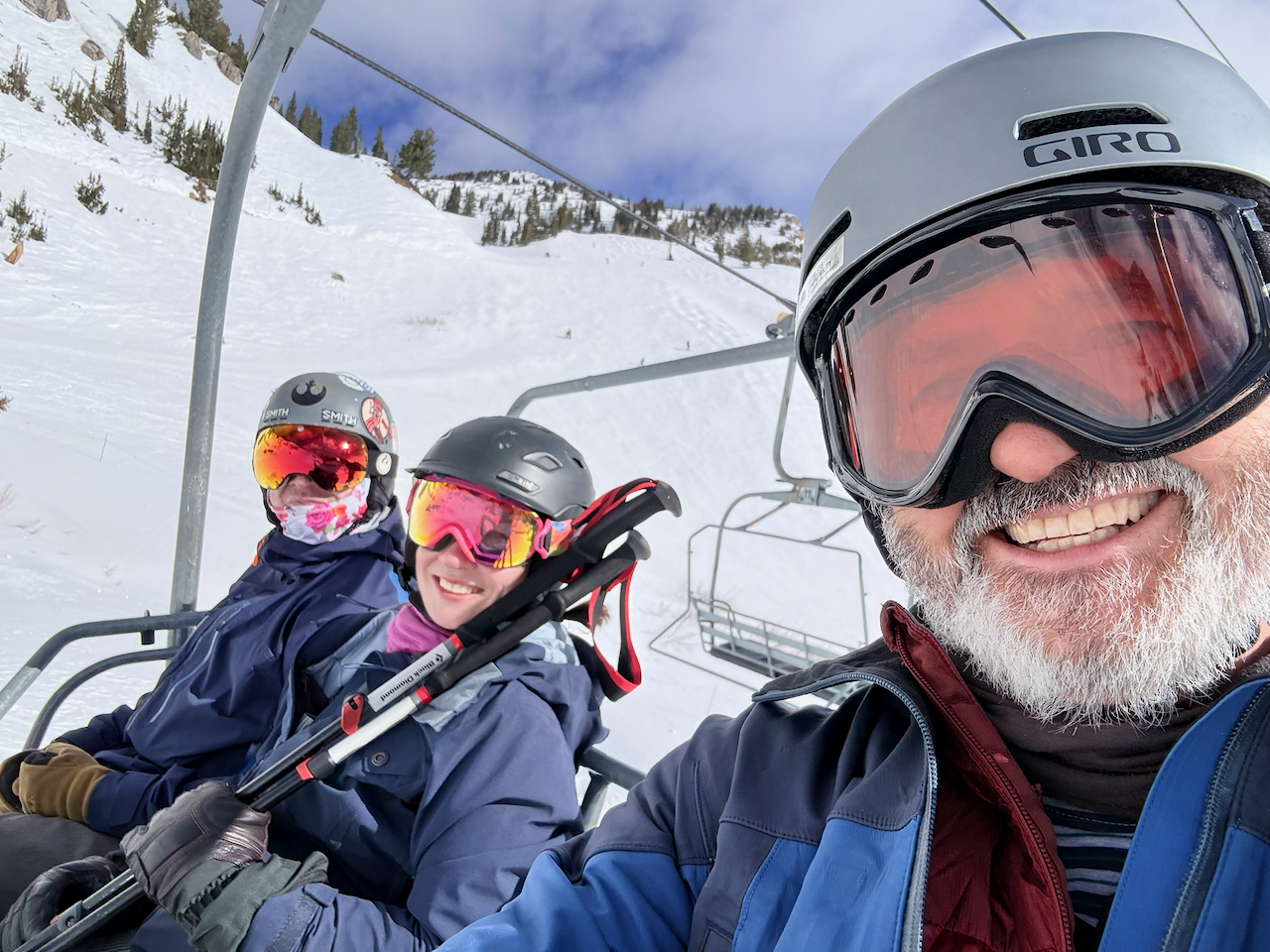 In the rental car with Eric and his family.There is a tunnel from one side of the mountain to the other in Snowbird.Brandon, Kendle and I heading up the chairlift at SnowbirdKendle and Brandon are ready to go! I rode with them on Tuesday.
