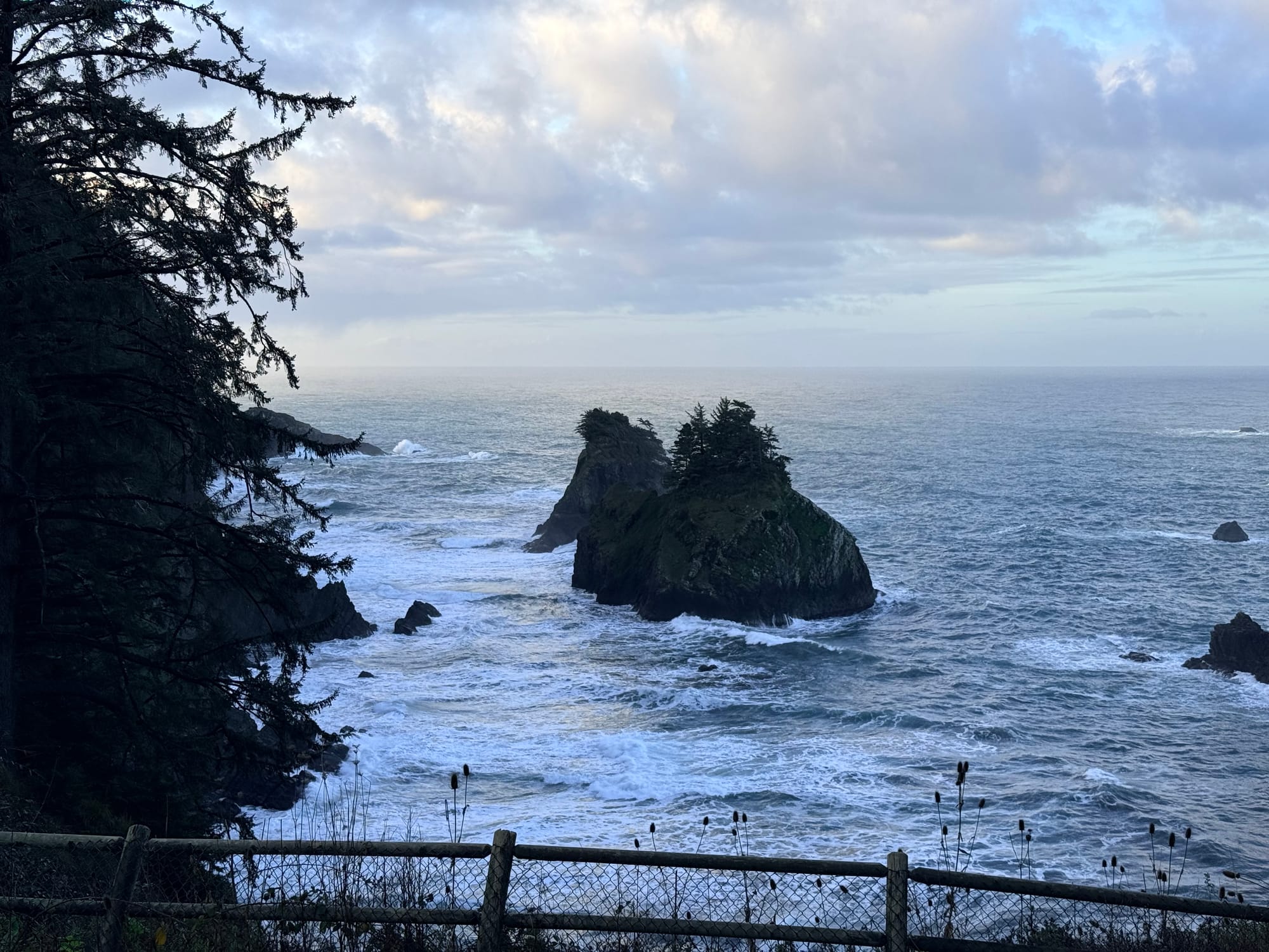 The weather was pretty crappy, so we didn't make many stops along the way. Tuesday saw us heading up Highway 101 to Brookings, where we had a hotel to spend the night. Wednesday morning, we continued our drive up Highway 1 in glorious weather. We had some spectacular views of the Oregon coastline. Man, that never gets old. Wednesday night, we made it to Mike's place in Seaside, Oregon. We watched the latest Knives Out movie and then headed to bed. I ended up sleeping in the van since the furnace wasn't working and it was cold in the house, and the heater kept me super toasty.