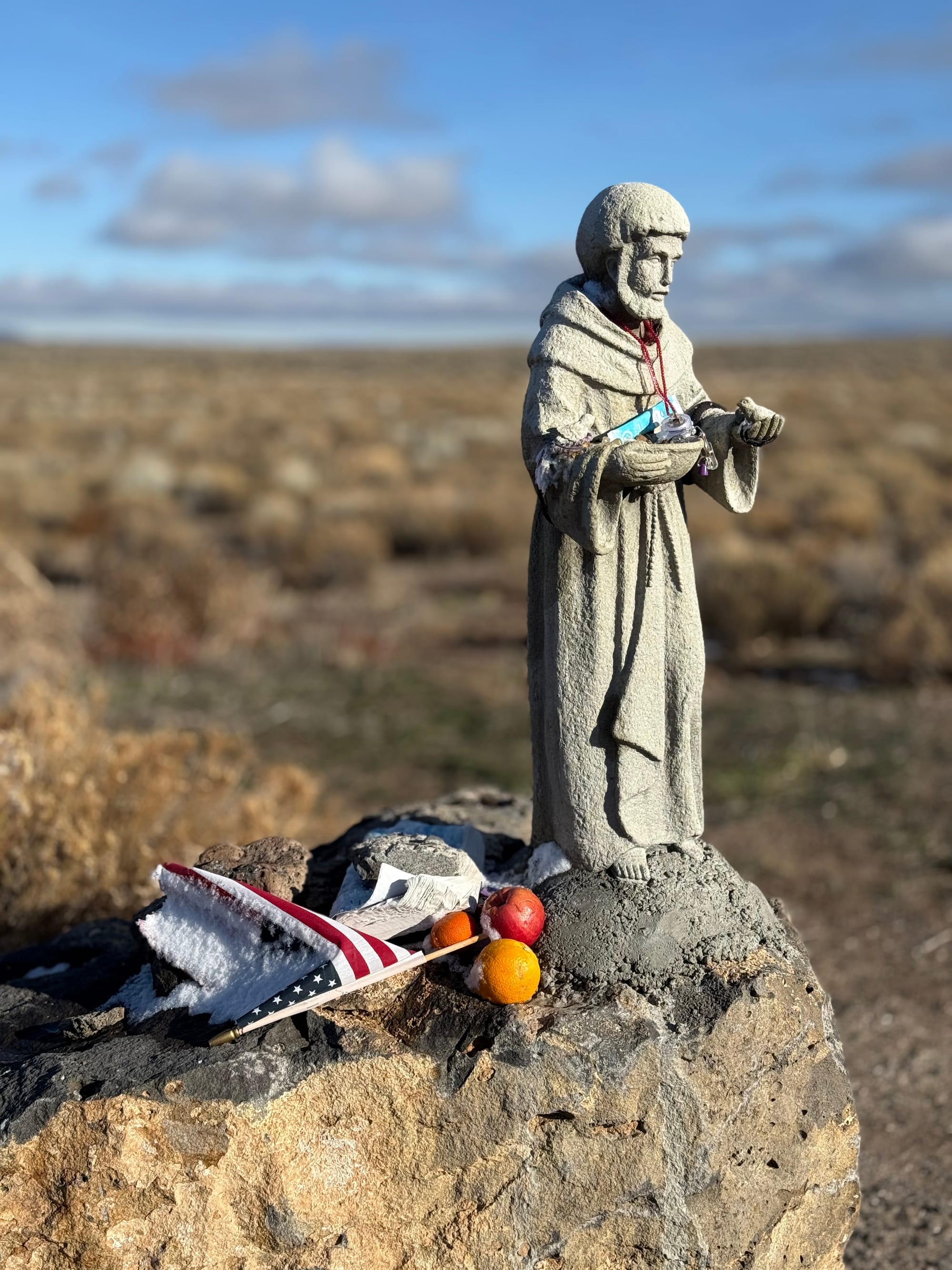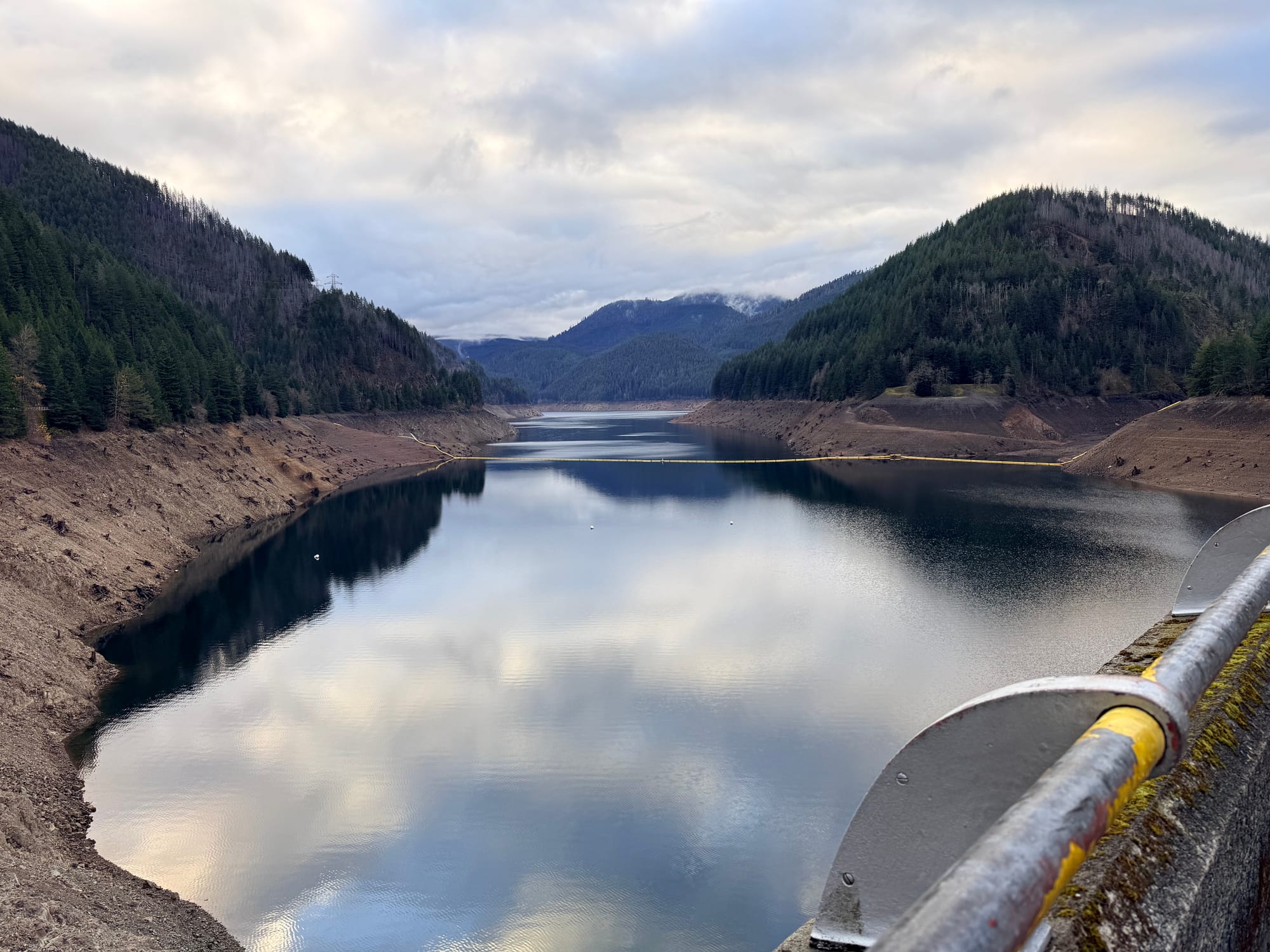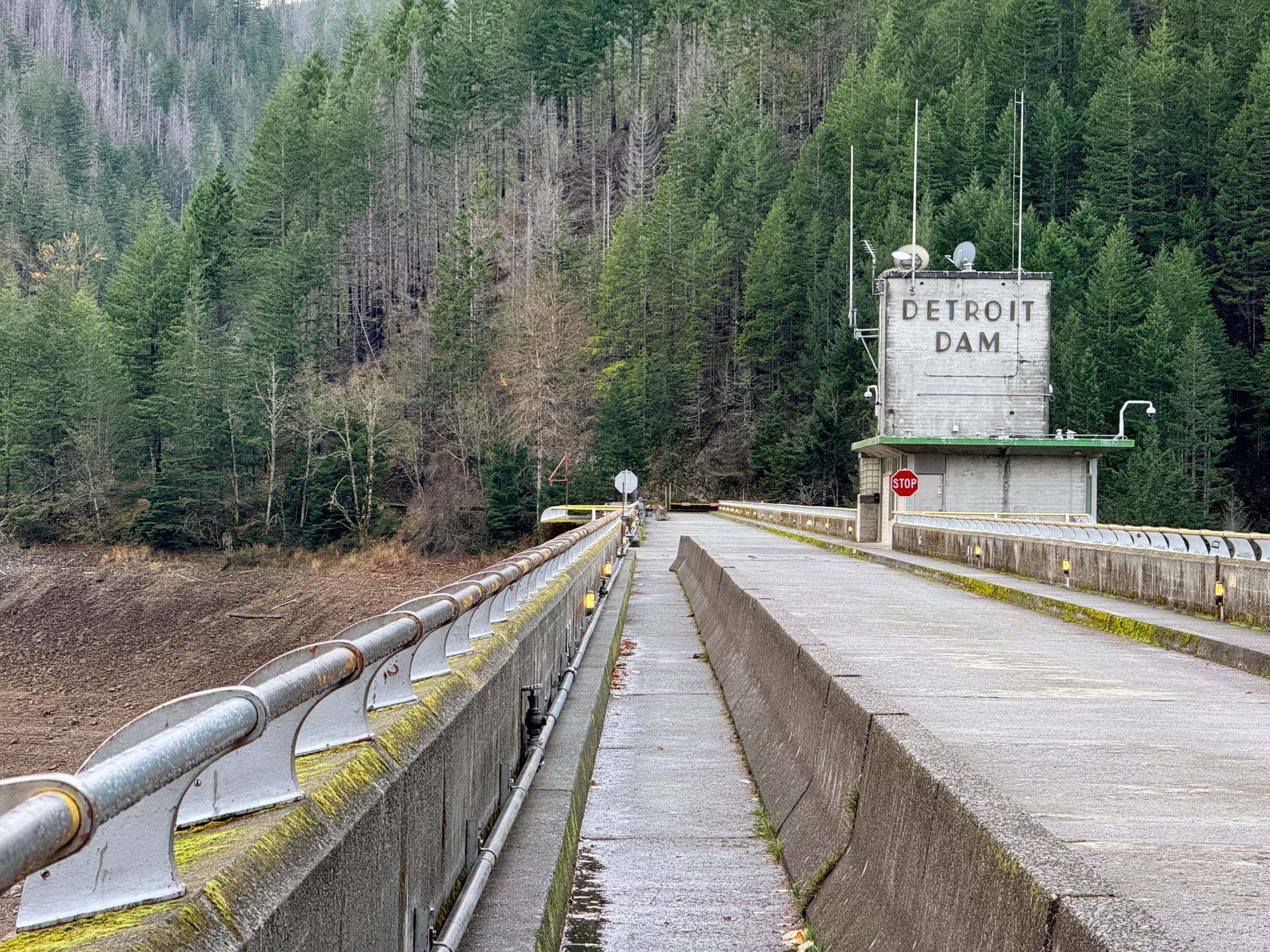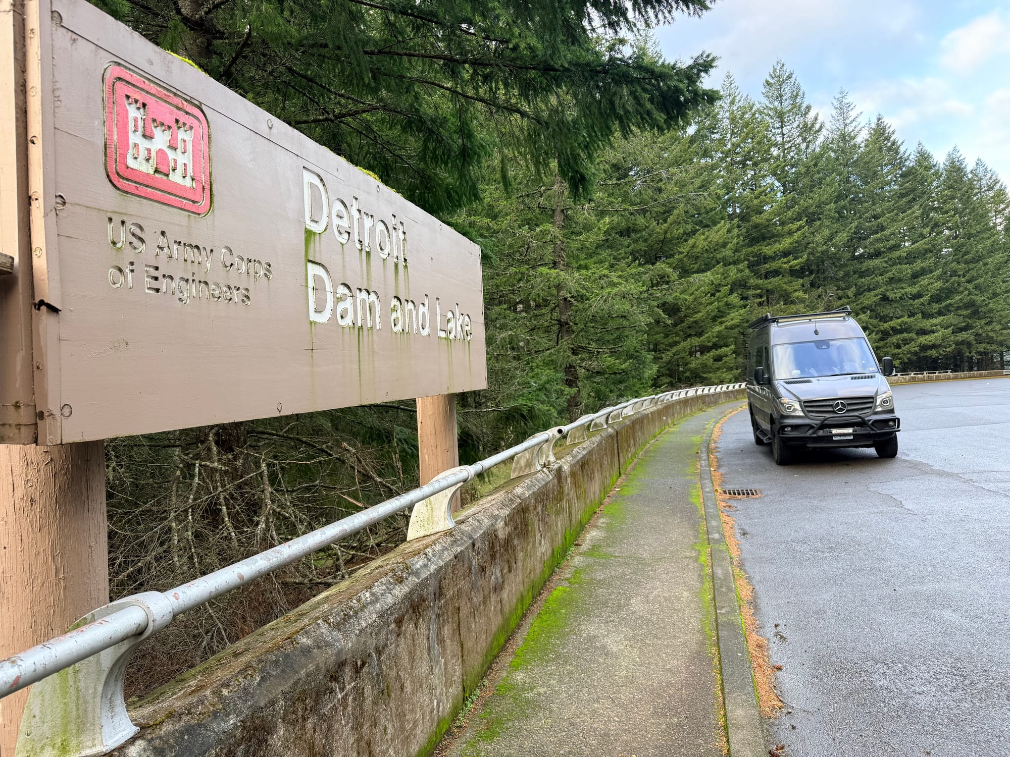Got up around 4:30, and hit the road just after 5 am, heading towards Burns, Oregon, via Sisters and Bend. I made it until 7 before it was time to pull over and take a quick nap at a very nice rest area. When I got back on the road, the sun was up, and the views were magnificent. Stopped at Detroit Damn to check that out. The reservoir has been drawn way down, and the bare banks of the lake go upstream for miles.