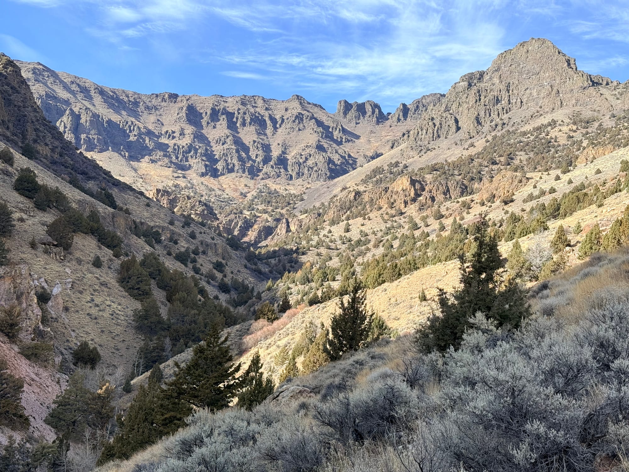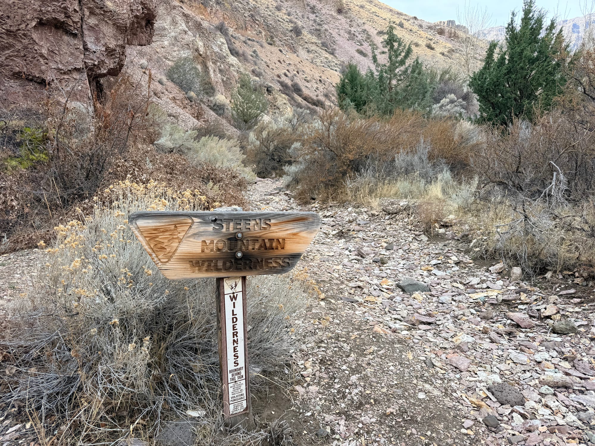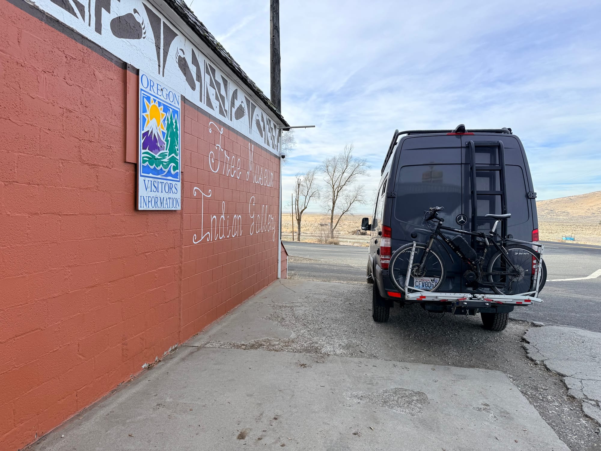 I had made a slight tactical error coming into the hot spring: I drove through Burns without topping off the fuel tank. The implications of this were that I had to travel 20 miles out and 20 miles back to fuel up for the day, as I didn't have enough fuel to make it all the way along the route that I was headed, and there were no fuel stops until beyond the range that I had on board. This has me thinking that I want to get the extended fuel tank installed before we start our 27 trip. So I got fuel at this local place, and headed out towards the Steen Mountains. Since it is winter time, I was not able to drive into the mountains themselves, so instead went along the eastern base of them, next to the Alvord Desert. There was about 28 miles of dirt road, that was pretty well maintained. I switched the suspension to setting one, and it handled it just fine, and I didn't feel too compelled to air down, although I am that would have made the ride a bit more comfortable. The weather was quite nice for the whole drive.