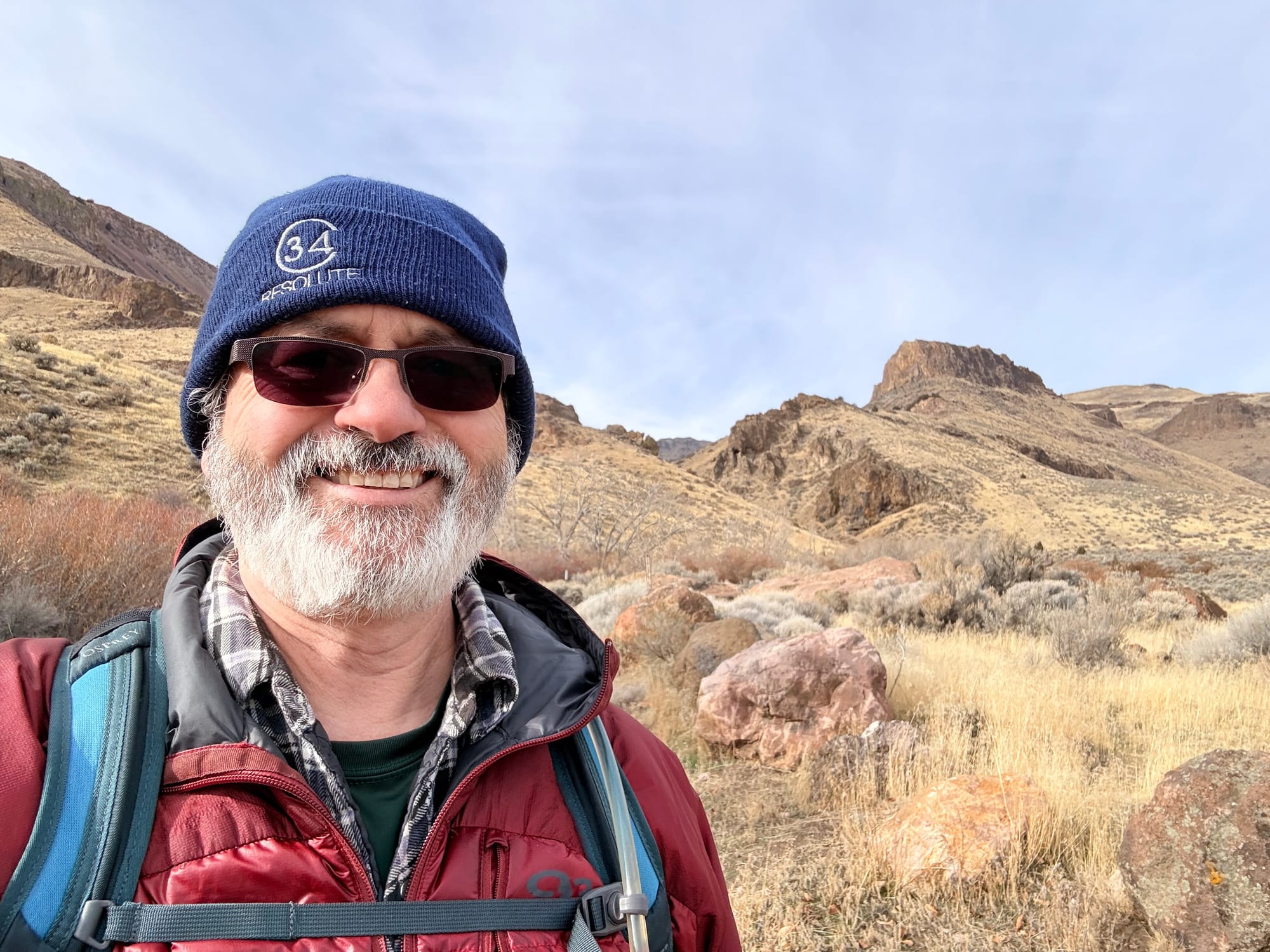 Well, I had a long day yesterday, and by the time I got to my campsite here in the Water Canyon BLM land, it was almost 9 pm, and I was beat. Yesterday I woke up in Crane Springs and was in the hot spring by 6:40, soaking there until the sun came up around 7:30. It was pretty lovely and cold. So cold, as a matter of fact, that my hair froze on my head. I grabbed a cup of coffee from the little cozy family room that they had there and packed up and headed out.