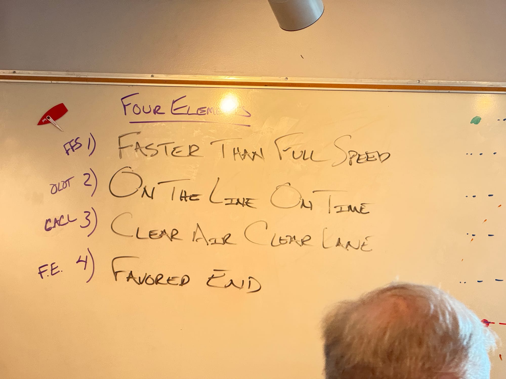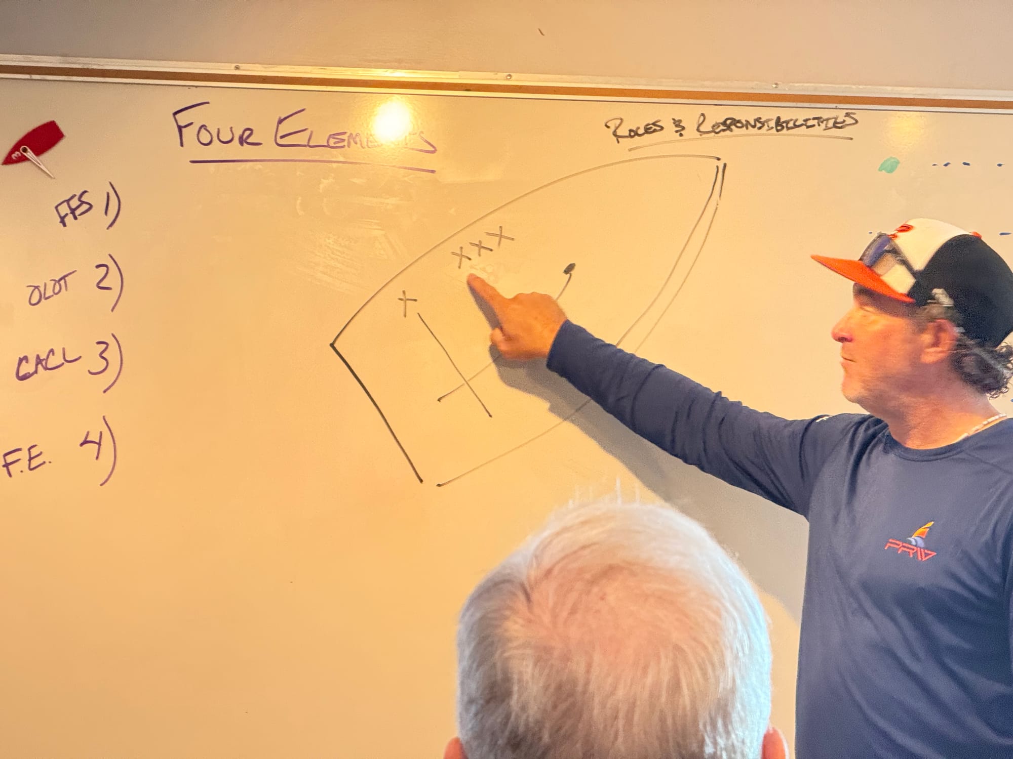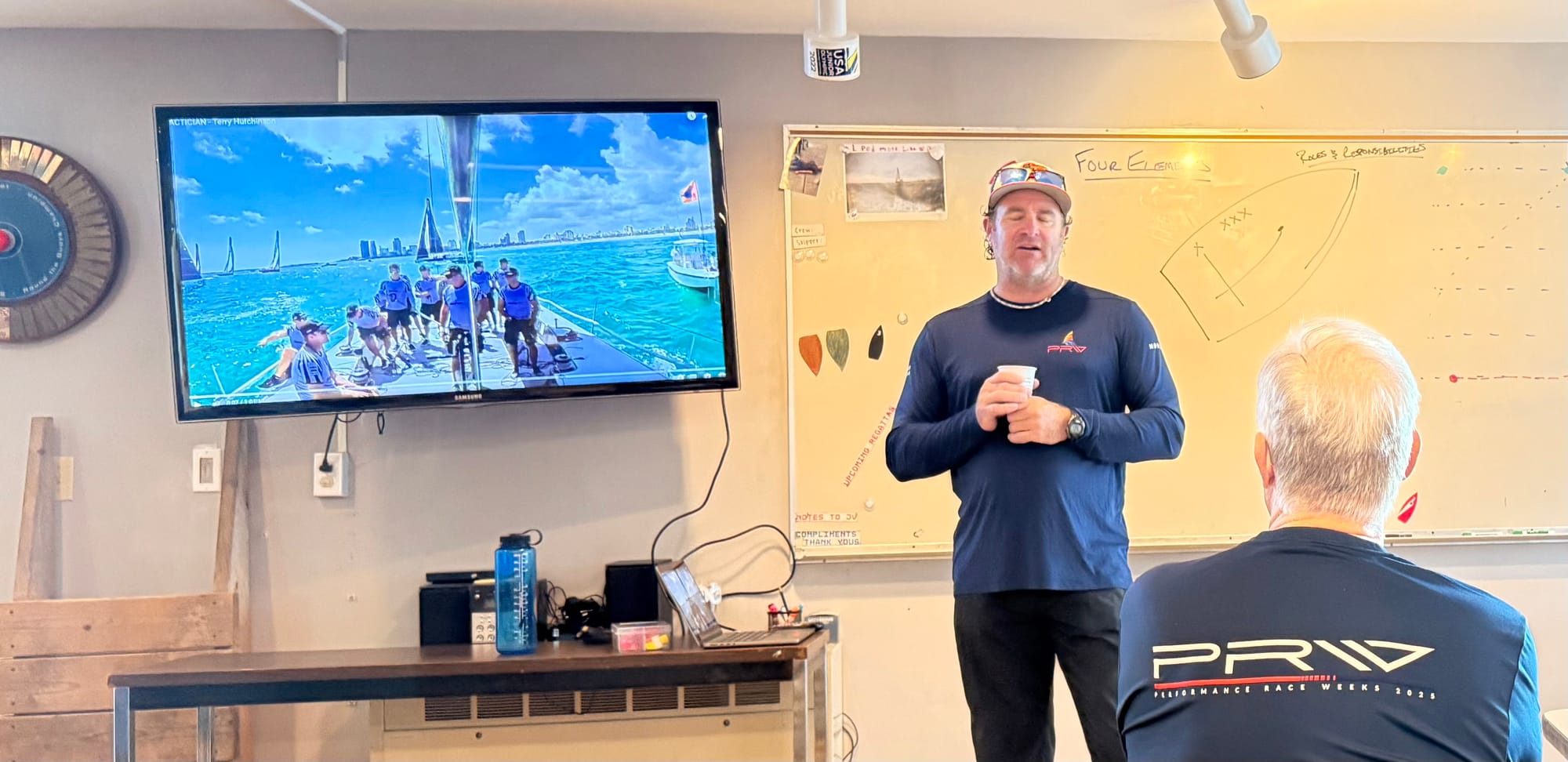 Overall impression: excellent practical framework and process for improving start-up and pre-start decision-making. We’ll rolled these into the on-water drills in the afternoon and practiced the half-tack, time/distance execution, and spinnaker handling under realistic conditions.