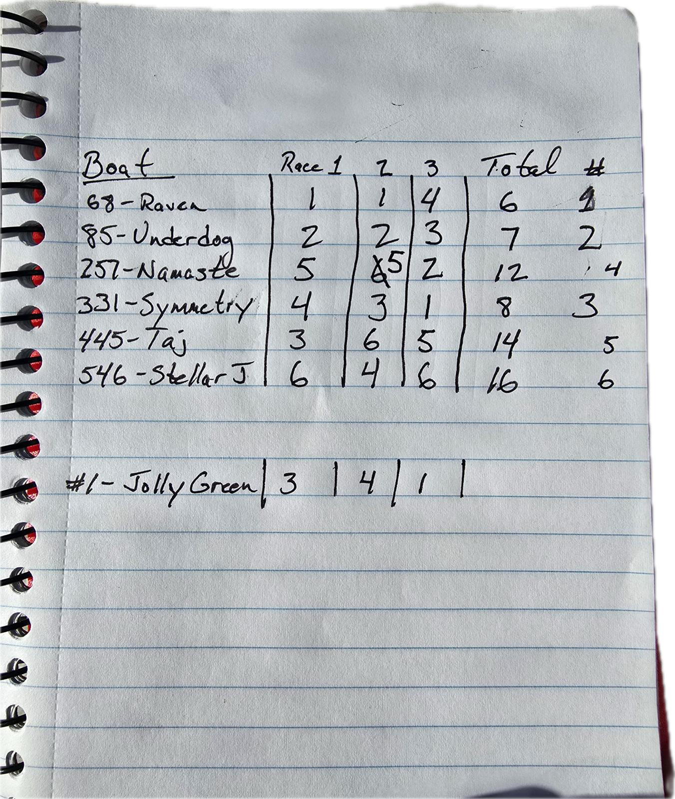 - Format: three races, each with a practice start sequence, then racing to Meadow Point and back.