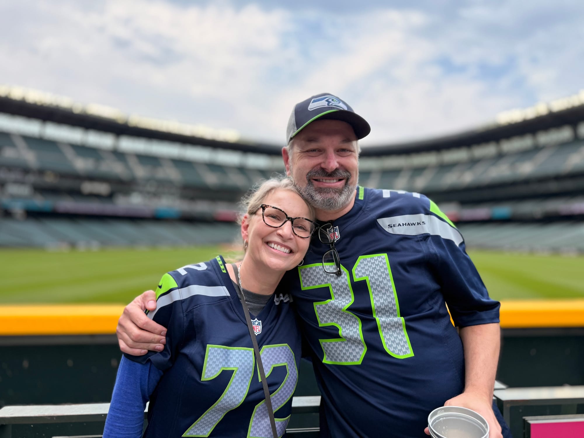 Last weekend I rode my bike down to the stadiums and went to see the home opener for the Seahawks season with my friends Tom and Lori. It was a ton of fun, but alas, the Seahawks threw it away at the end of the game. It was cool that Steve Largent and Jim Zorn raised the 12 flag before the game.