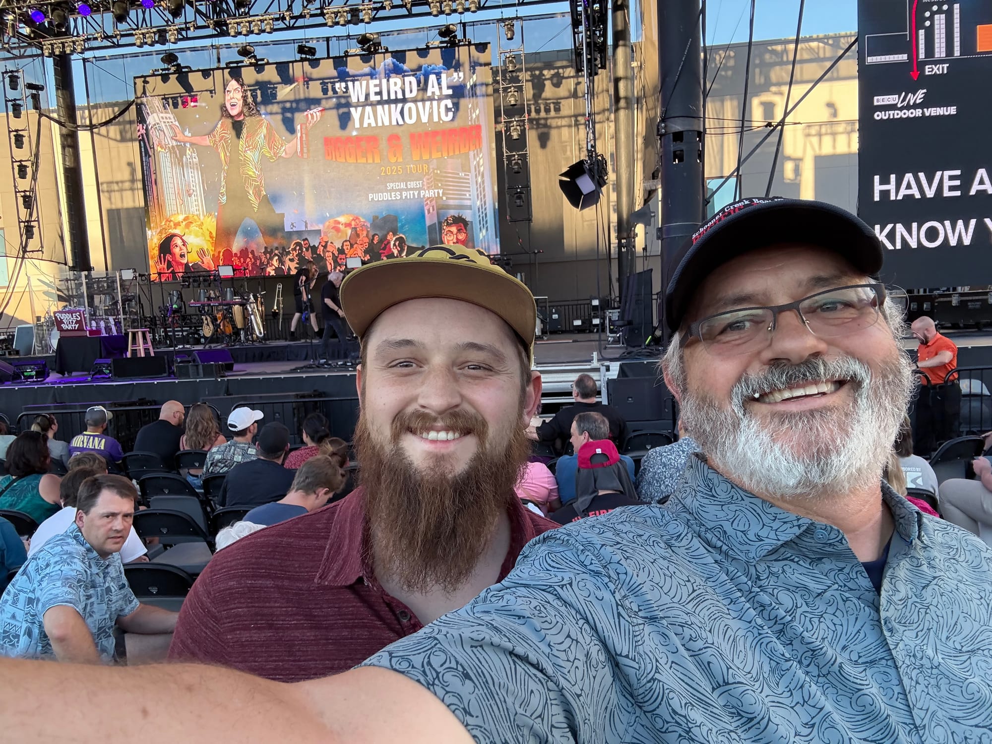 Well. Jack and I had a wonderful time at the weird Al Yankovic concert at airway heights in spokane yesterday. After my Workout, and breakfast with Sue and her friends from San Diego, we hit the road and headed to airway heights. The trip over was uneventful and fun. Thabk goodness for air conditioning I. The car.
